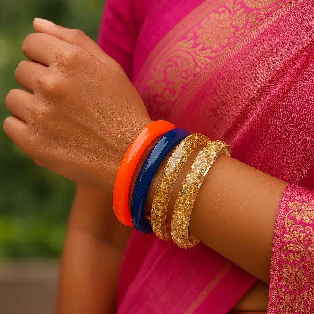 | ✨ Product Name | Clear Resin Bangle with Gold Flakes (Set of 4) |