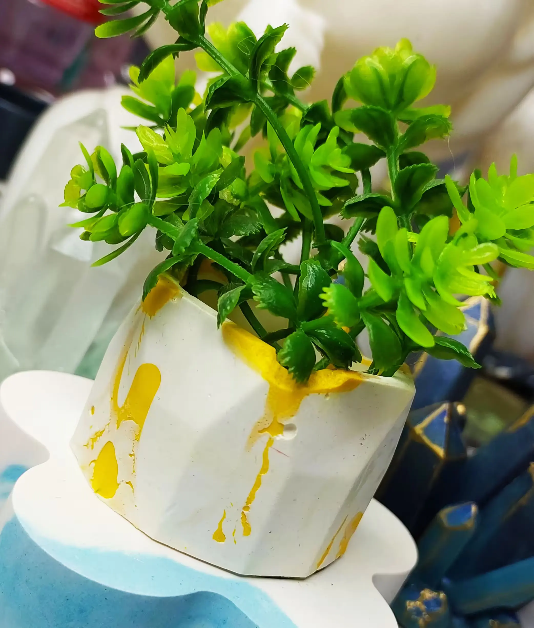 - Jesmonite, Luxury Tabletop Planter , Viral and Trending in India , Bling On , Famous Products, Handcrafted in India , Quality Assured , Green Pattern , Handmade , Unique Design , Leaf and Circle Motifs , Modern Home Decor , Eco‑Friendly Decor