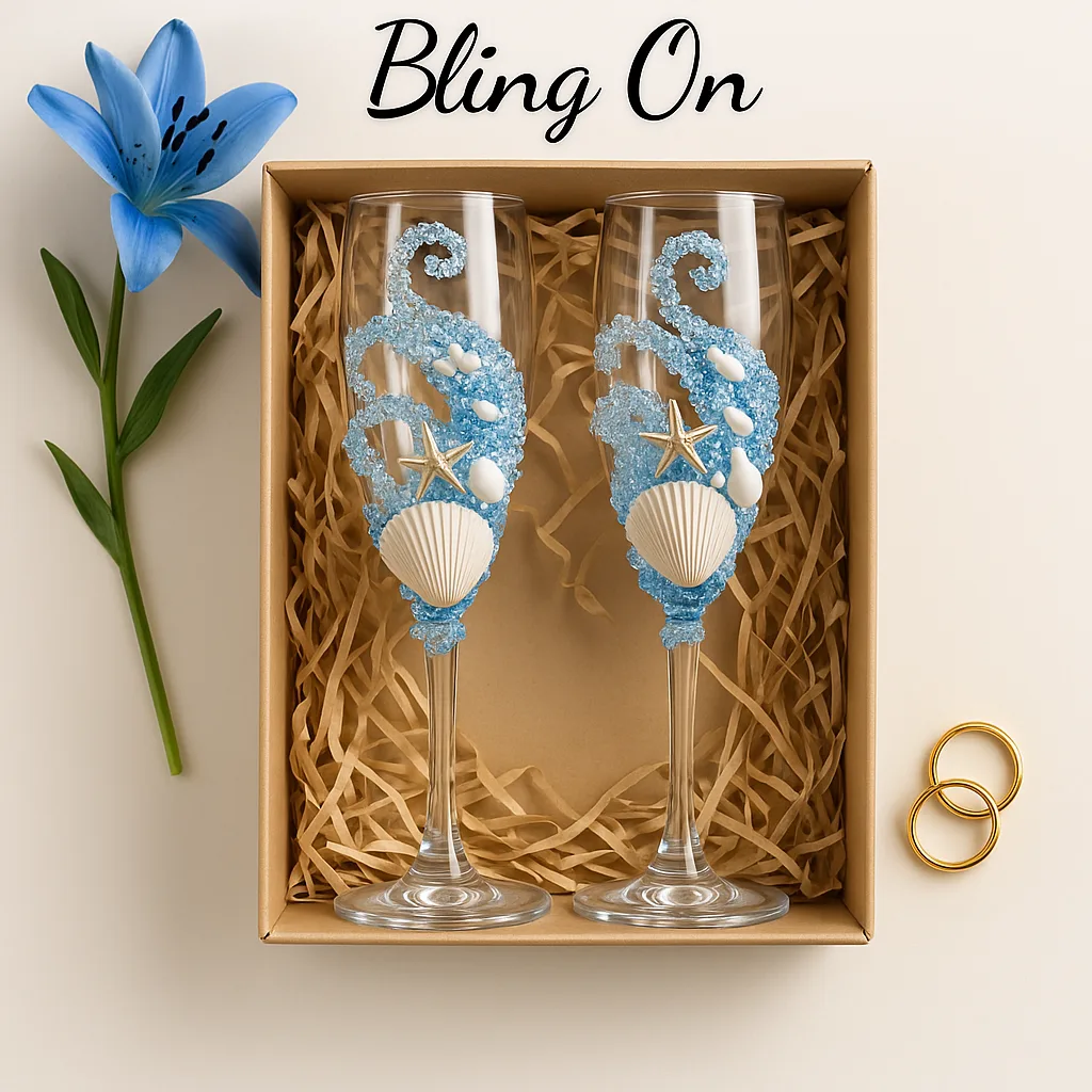 Make your first toast as soulmates unforgettable 💍✨ Introducing the Bling On Coastal-Inspired Wedding Champagne Flute Gift Set – a handcrafted masterpiece made for beach weddings, resort celebrations, and luxury gifting.